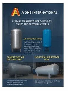 We are among the pioneers in the industry for manufacturing and supplying ASME Receiver Tanks, We are the best Air Receiver Tank Manufacturer in Ahmedabad. The offered tanks are made in tune with the industry standards and have earned us loads of profits. These tanks are robust in terms of construction, durable, leak proof, non-corrosive and ideal for automobile and electrical industries. Being resistant to wear and tear, it is extensively demanded.
